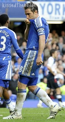 Lampard started the next game against Bolton and the fans made it clear whose side they were on by repeatedly singing his name. He repaid their loyalty with a goal in a 3-0 win followed by a badge kiss.